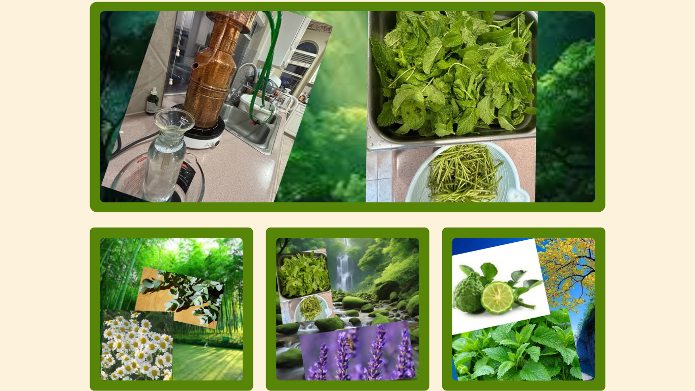 1) 用新鮮有機薄荷植材蒸餾出有機薄荷純露